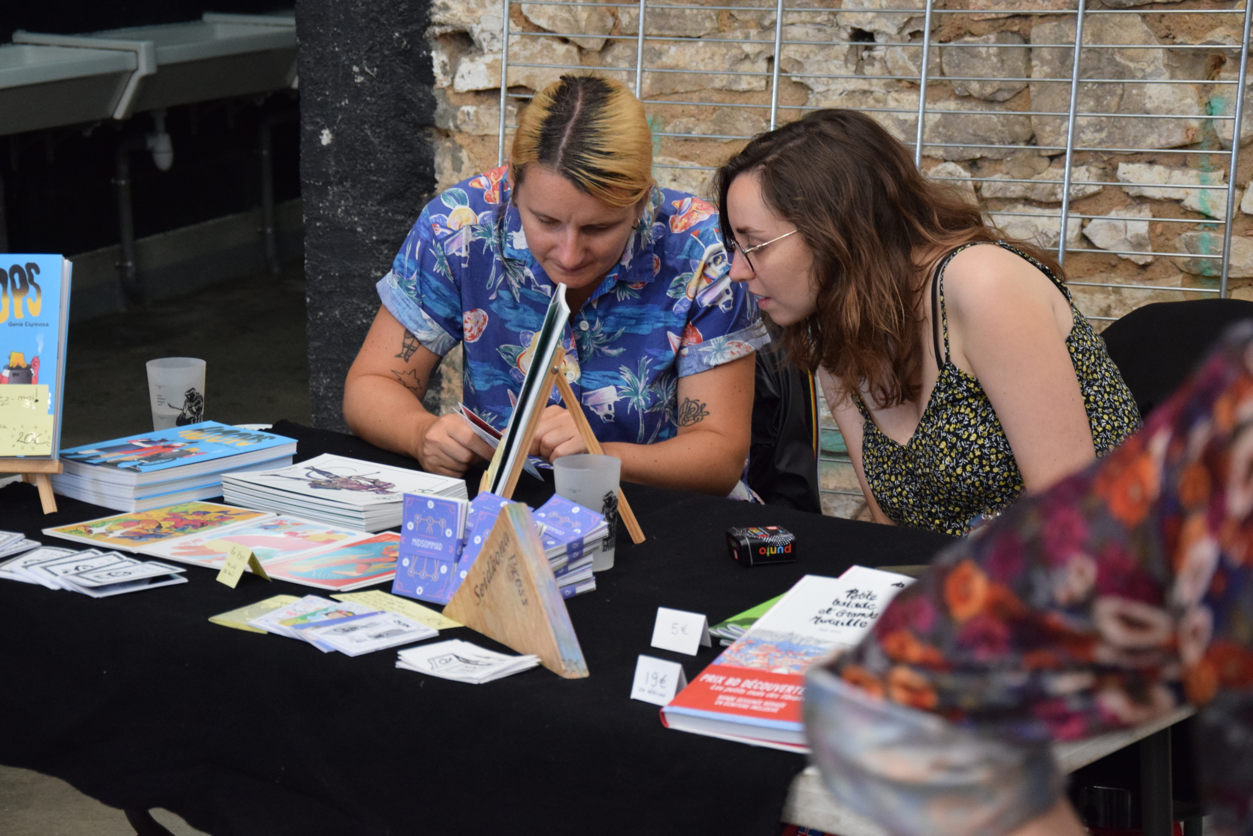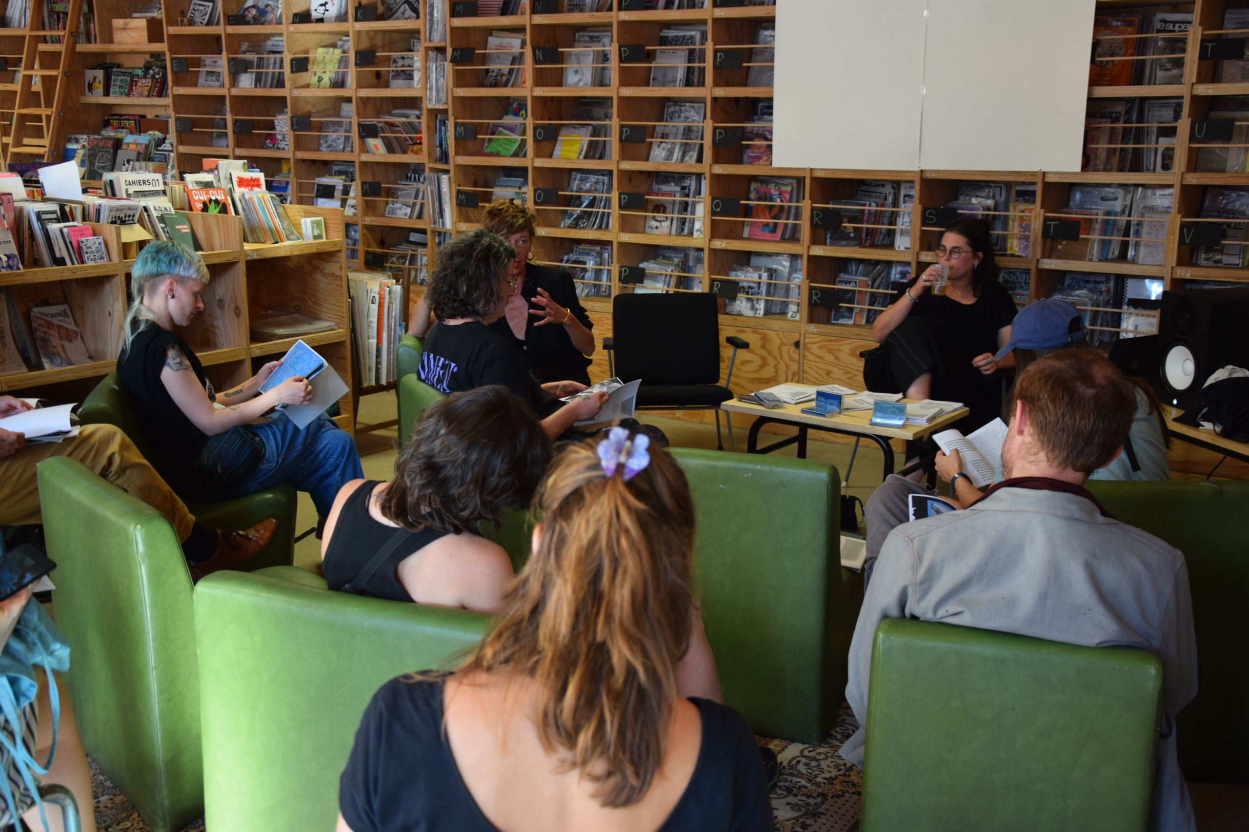 Modératrices : Marie-Pierre Bonniol (artiste, curatrice, autrice) et Marie-Luce Schaller (libraire, illustratrice). Elles se sont toutes les deux rencontrées à Berlin autour du fanzine Ventoline et de l’amatorat.