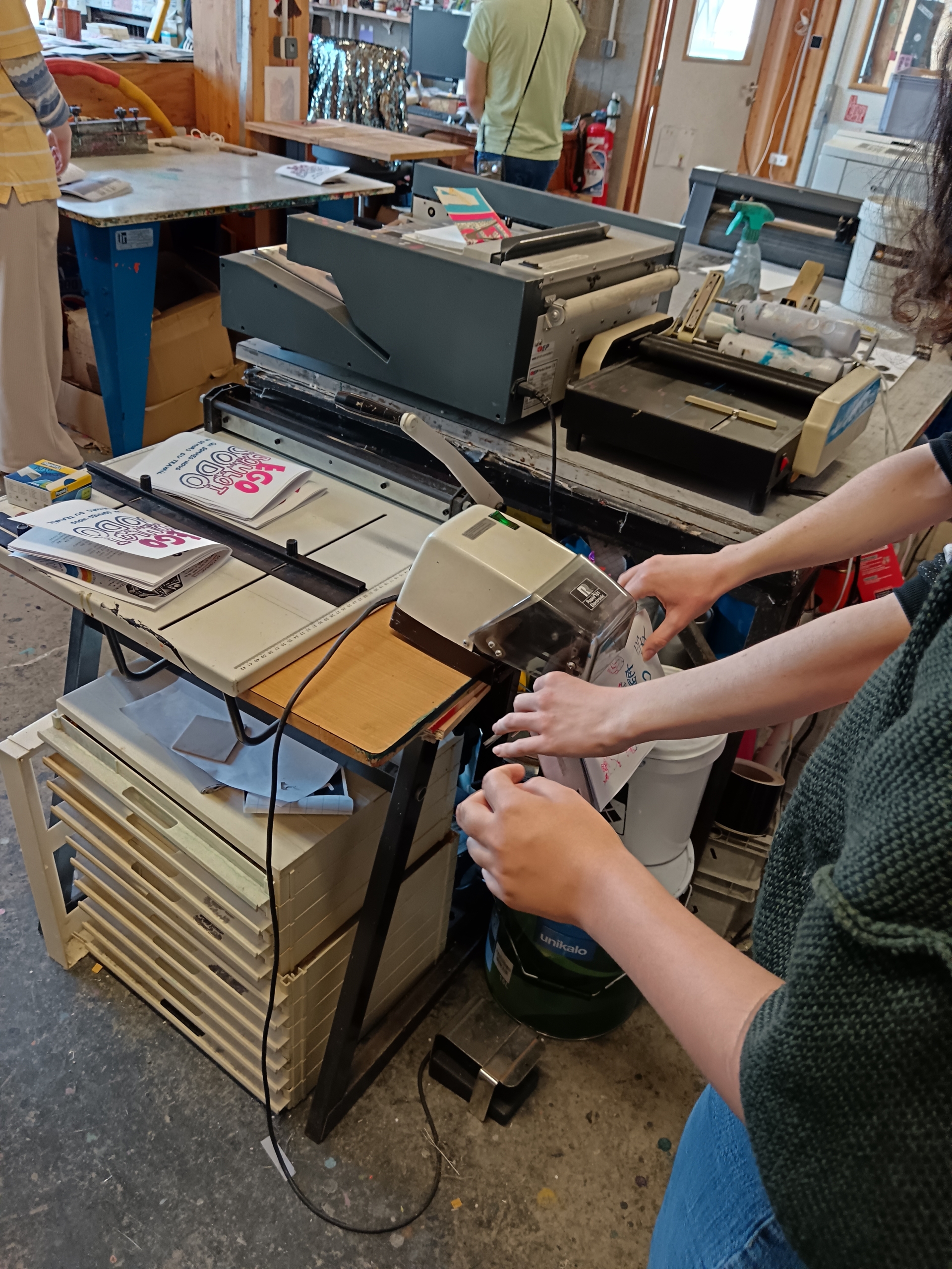 Impulsé par des volontaires en service civique à La Mission Locale de Poitiers, cet atelier propose aux apprenti·e·s ziners une initiation à la sérigraphie et un temps d’écriture, de collage et de dessin pour réaliser un zine collectif.