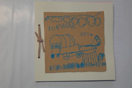 Couverture imprimée sur du cuir lors d’un atelier à la Cité des Tanneurs de Lavausseau.