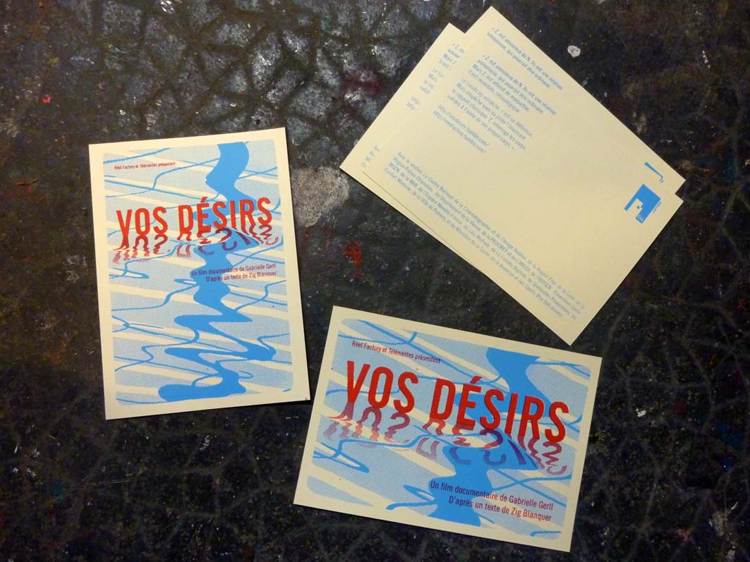 Film Vos Désirs, REAL FACTORY, affiche et carte postale Impression de l’affiche et des cartes pour la sortie du film Vos Désirs de la société REAL FACTORY à Poitiers
